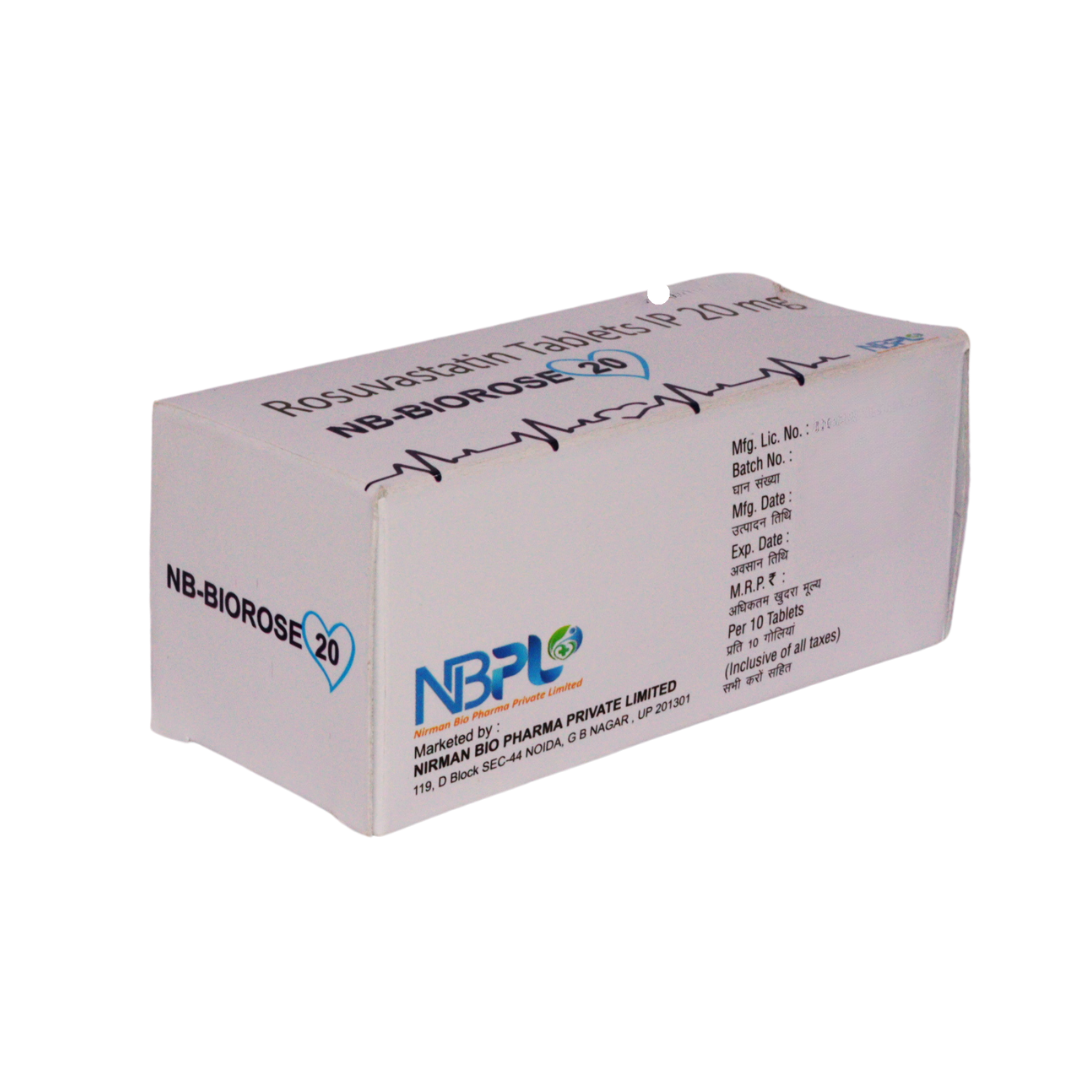 Nb-Biorose 20 Rosuvastatin 20mg is a prescription medication used to manage high cholesterol and triglyceride levels in the blood. It works by inhibiting the production of cholesterol in the liver, leading to a reduction in low-density lipoprotein (LDL) cholesterol and total cholesterol. This medication is effective in reducing the risk of heart attacks, strokes, and other cardiovascular diseases. For optimal results, it should be used alongside a healthy diet and regular exercise.